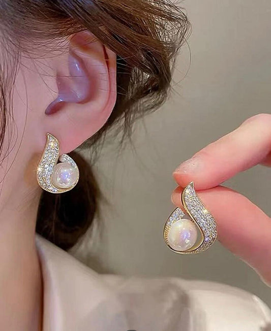 Rhinestone & Faux Pearl Decor Stud Earrings