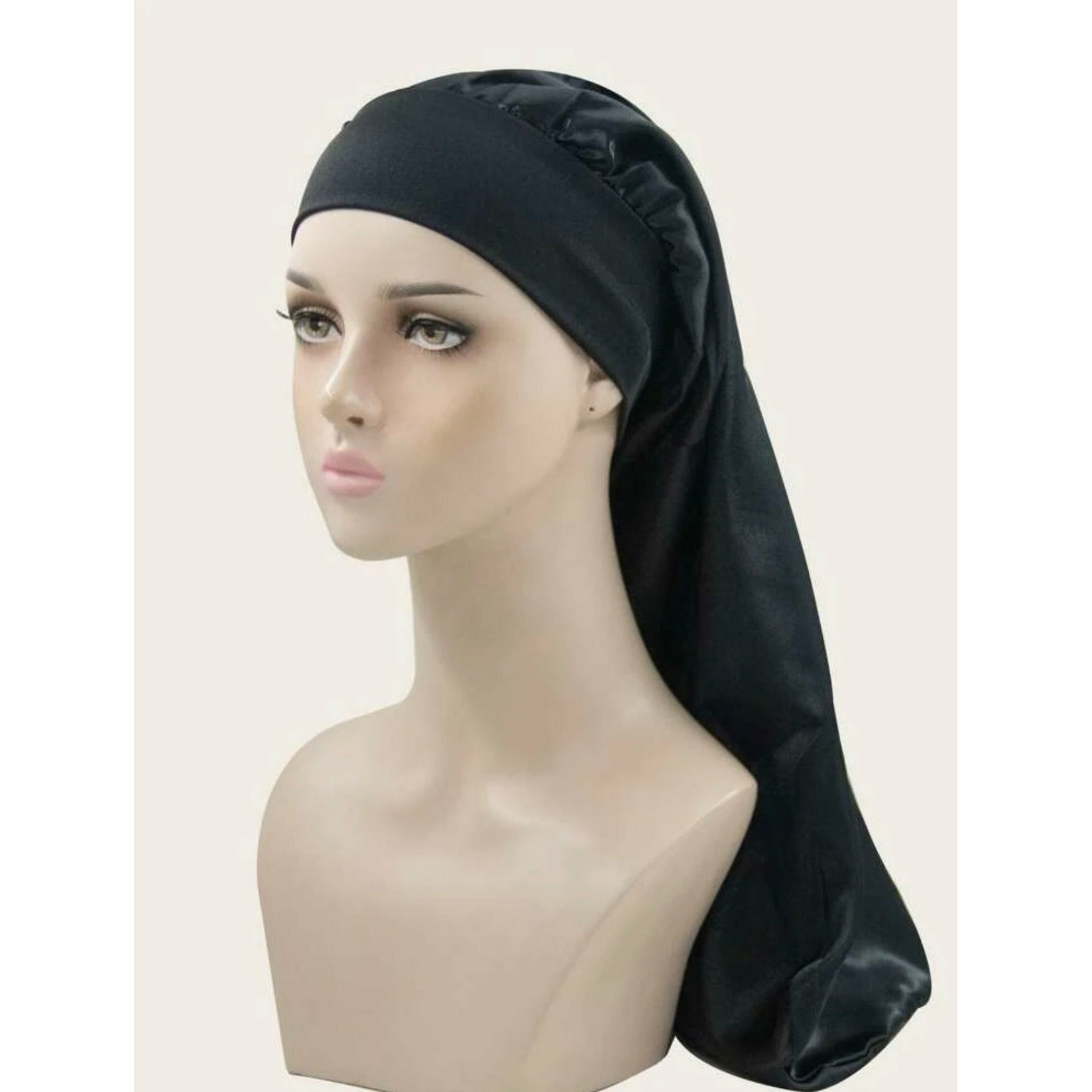 Extended hair bonnet. One size. Comes in pink, black and navy blue.