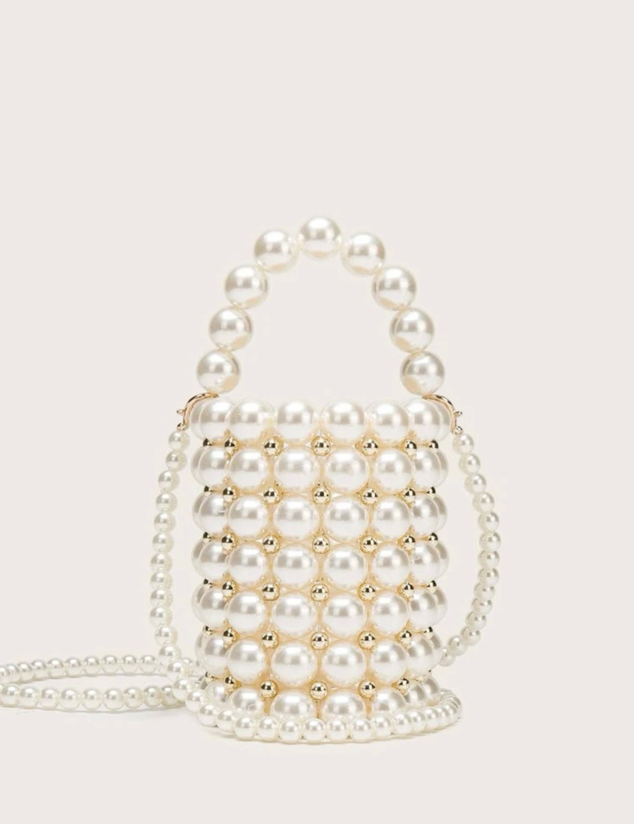 Mini 2 in 1 Faux Pearl Beaded Bucket Bag